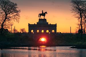 Twice a year the sunrise lines up with the Ulysses S Grant statue in Lincoln Park, as seen from the boardwalk.
