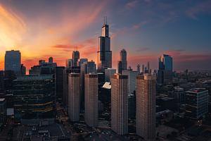 This is a view from the West Loop with the Presidential Towers in the foreground.