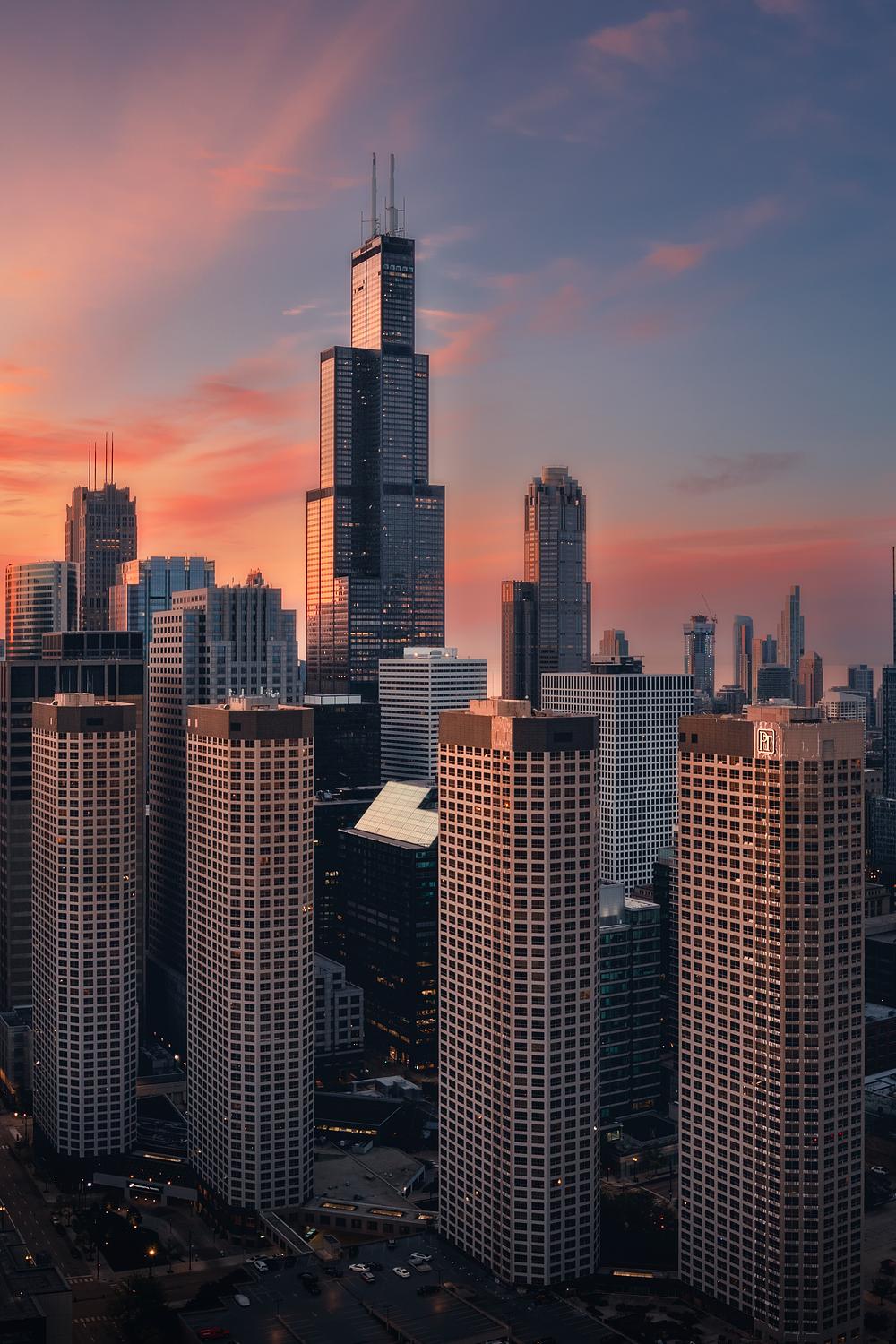 This is a view from the West Loop with the Presidential Towers in the foreground.
